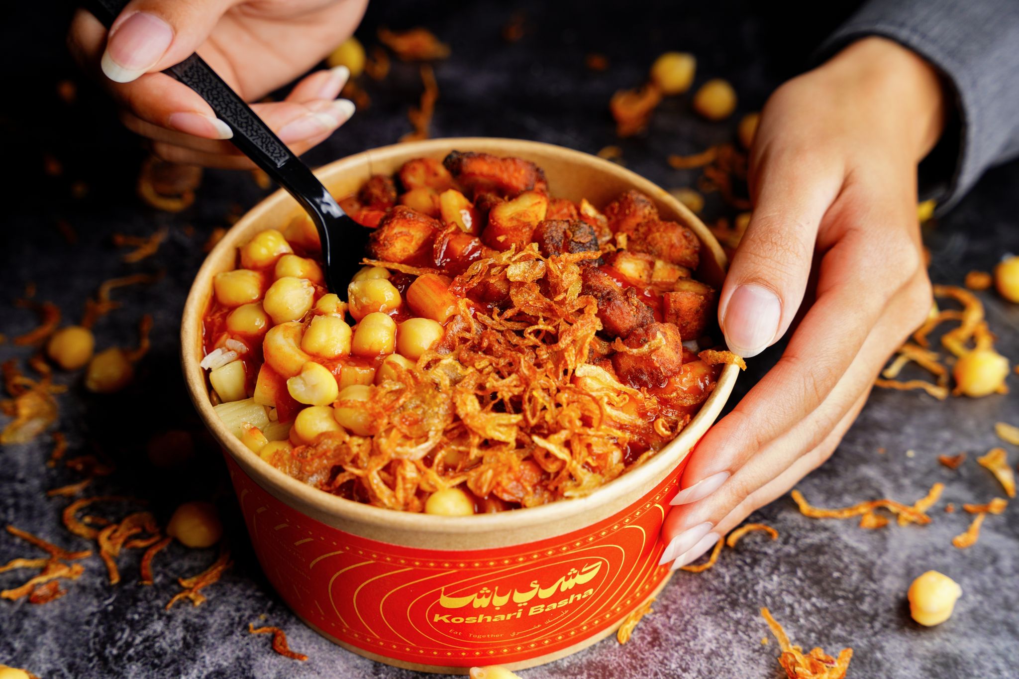 Rebranding for a Koushari Joint in BahrainA fresh identity was designed, with a custom 'Fat' lettering for the logo reflecting a friendly Koushari Basha brand as an affordable street food, and a filling meal that everyone enjoys.